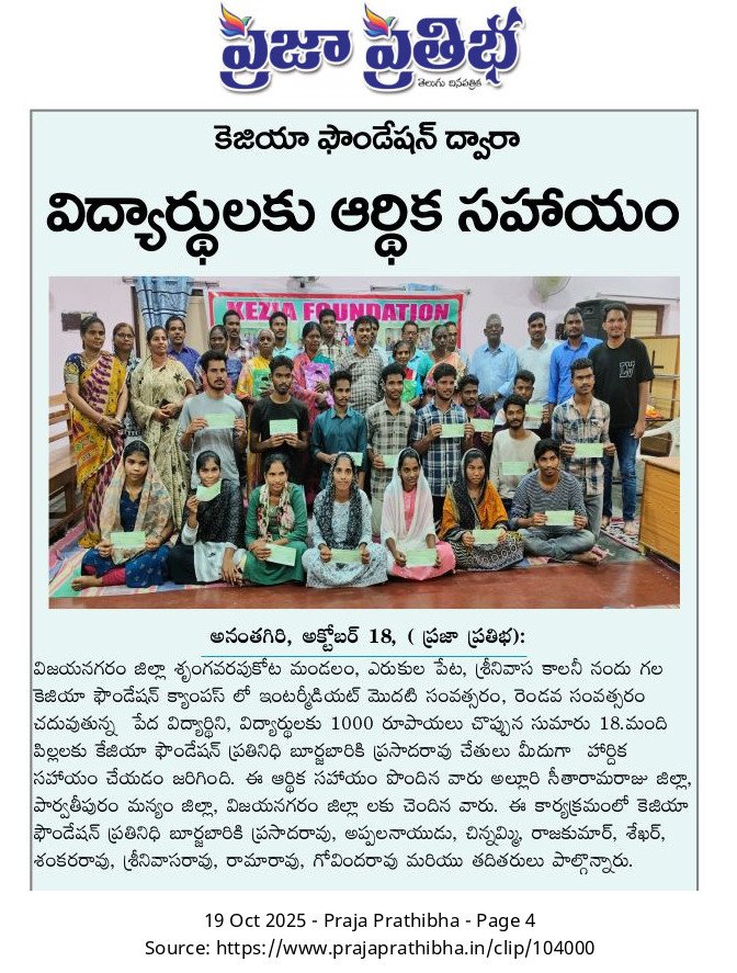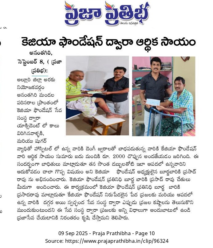 Our organization is led by a visionary leader, Sri. KEZIA FOUNDATION, whose unwavering commitment to our cause has been the driving force behind our success. Established in 2023, since then the organization has been expanding continuously in terms of social and Educational Development and Medical services, Food, and Sheltering for Orphans. It has worked for the promotion of sustainable, equitable, and participatory development, social welfare, and social justice th...